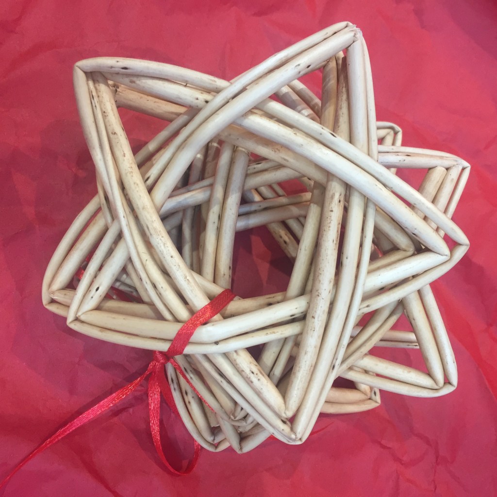 Set of 5 Willow Stars £8 Stars measure approximately 12cm x 12cm and are woven in Cambridgeshire & Somerset Willow. They make decorations with a very low carbon footprint and will last for years.
