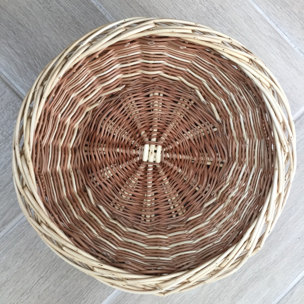 Fruit & Bread Basket £30 Base diameter 19cm, Top diameter 29cm, Height 10cm An everyday use basket woven in Cambridgeshire and Somerset willows, with French rand side weave for a beautiful dynamic spiral pattern.