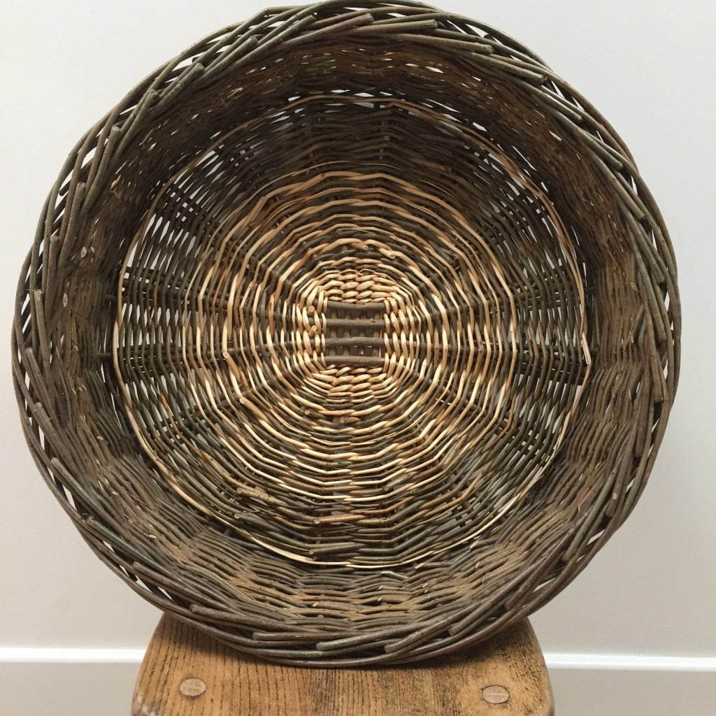 “Grid” Serving Basket £50-£70 Large -Diameter 54cm, Height 14cm Small- Diameter 30cm, Height 14cm Serving basket based on an Irish “Skib” basket used for gathering,draining and serving potatoes. Great used as a fruit basket or for drying walnuts or cobnuts, or as a serving platter for cakes, bread or as a trivet or tray. They can be stored in a sculptural way on walls between use.