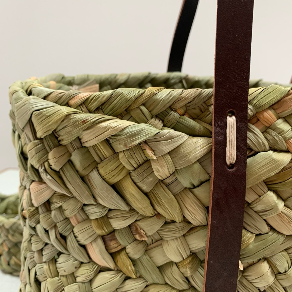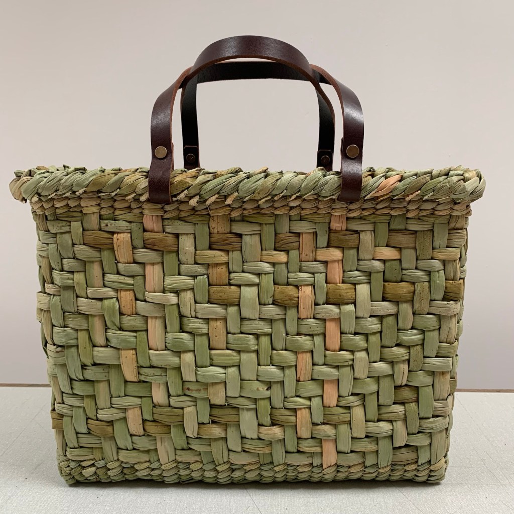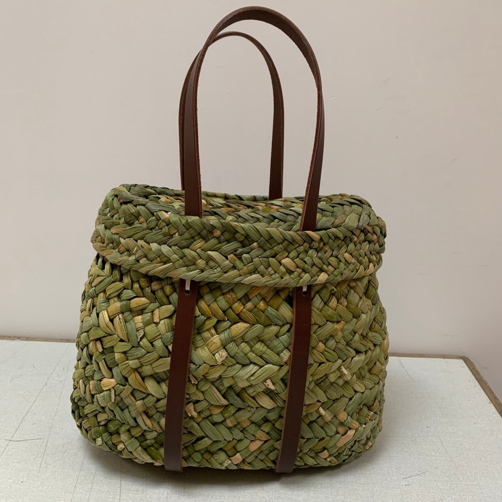 Friday 17th-Saturday 18th April 2026,9.30am-4.30pm Rush Twill Weave Tote with leather handles £240 per person Suitable for those with some experience of Basketmaking.